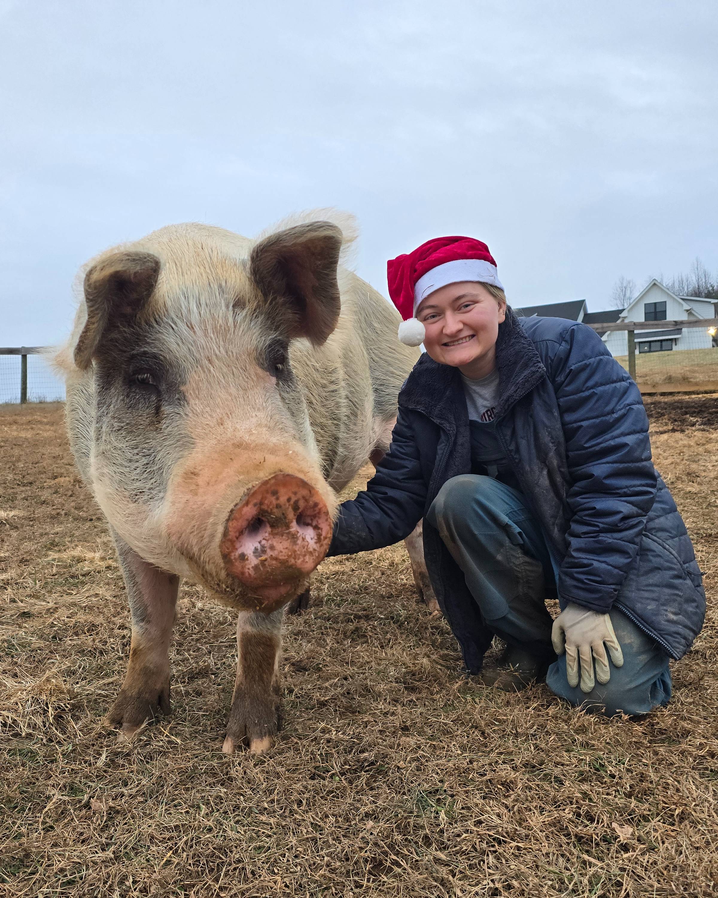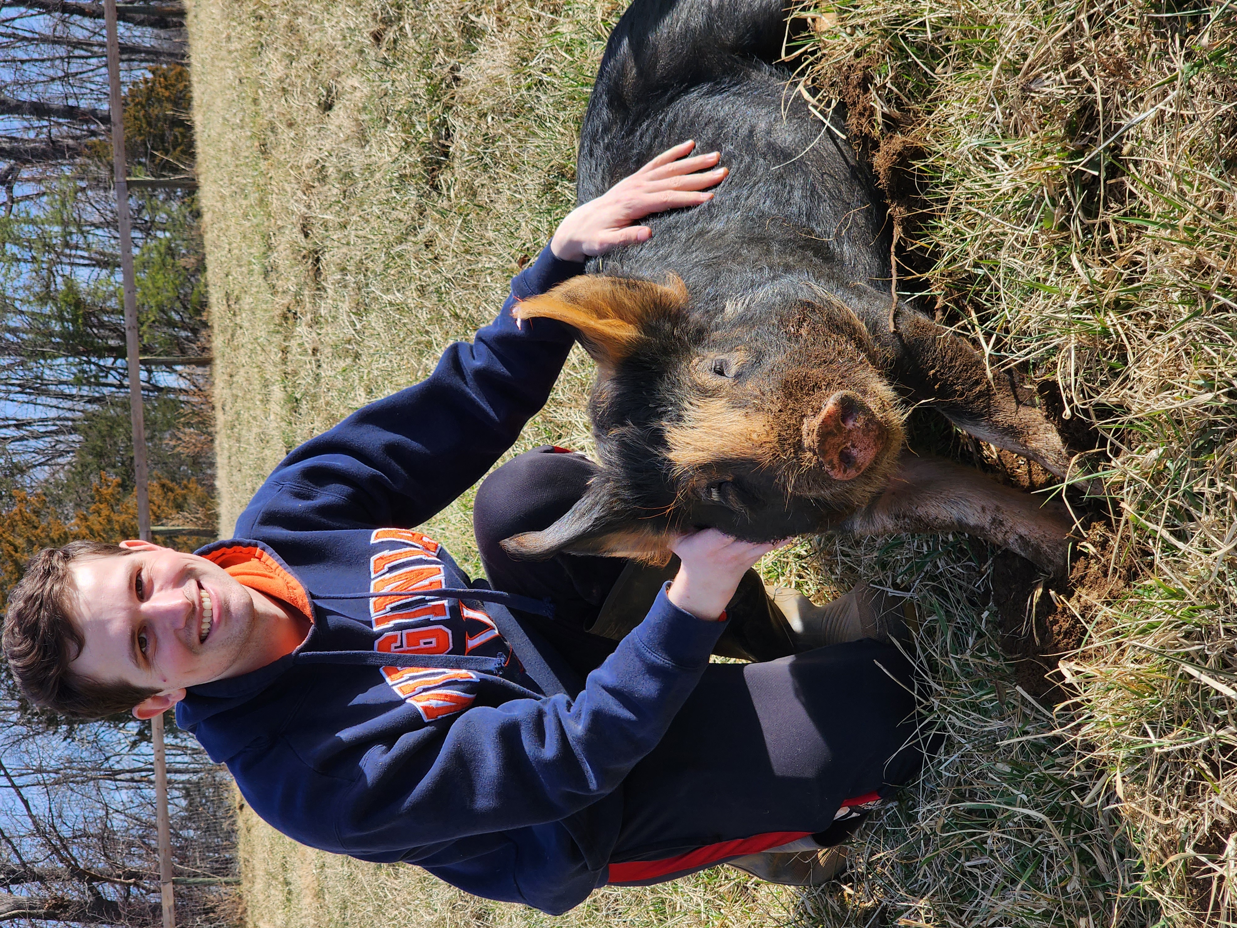 Vegan since 2021. Volunteer from May 2022 - May 2026. Derek works very hard and gives great pig belly rubs!